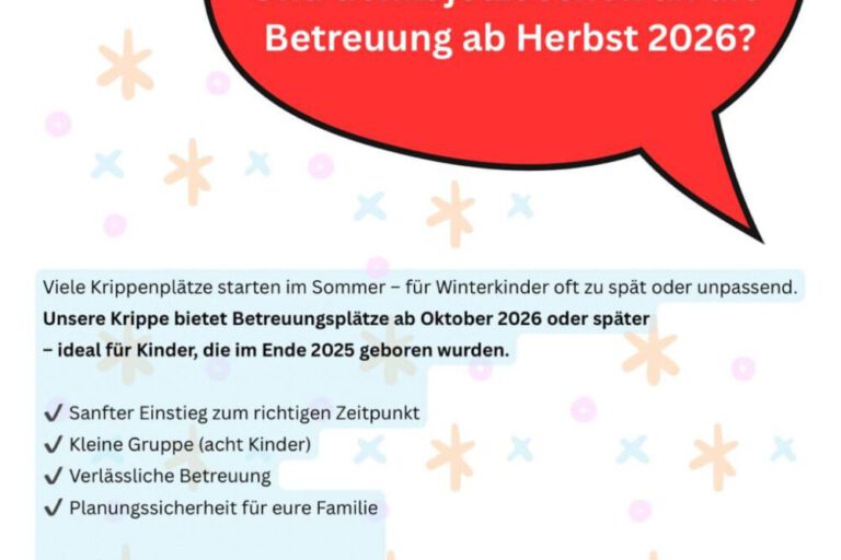 Hallo Winterkinder! Wir bieten Betreuungsplätze ab Oktober (oder auch später) an! Meldet euch gerne unter anmeldungen@hansguckindieluft-hannover.de und vereinbart einen Kennenlern- und Besichtigungstermin mit uns. Wir freuen uns auf euch!